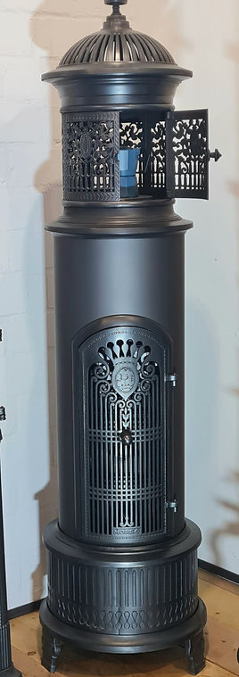 In unserer Sammlung haben wir auch das kleine Modell von 122 cm Höhe. Dieser Ofen verfügt über kein Koch / Backfach.